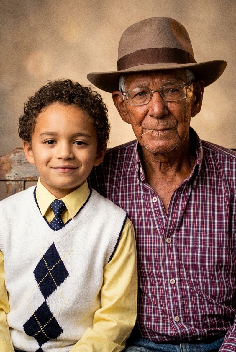 Our AI studies both faces and generates a realistic studio portrait of you side by side — as if you’d sat for it together.